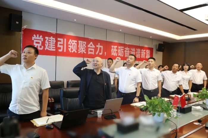 党课开始,全体起立,奏唱国歌;机关支部书记梁勇带领全体同志集中宣誓,重温入党誓词。大会现场庄严肃穆。