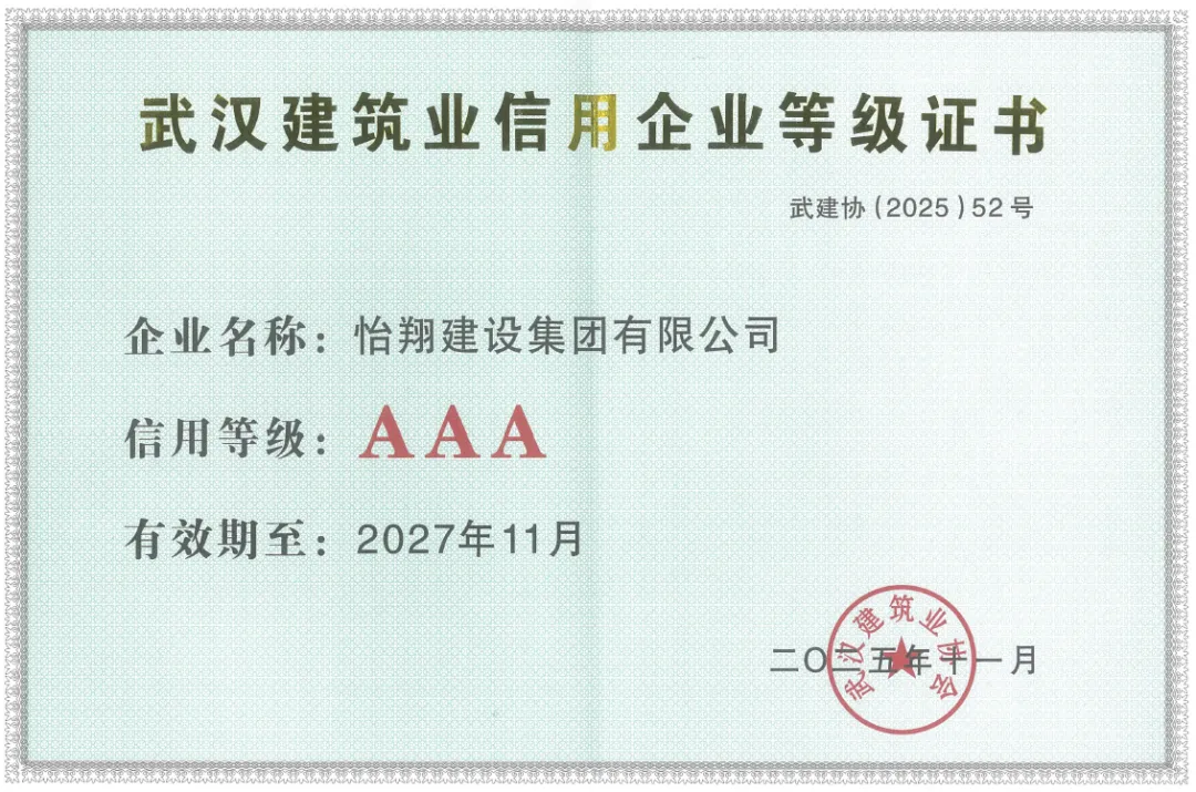 怡翔集团五度蝉联“武汉建筑业信用aaa企业”,是市场对怡翔集团诚信经营、稳健发展的认可,更是我们持续前行的动力。未来,怡翔集团将始终以信用为基石,以创新为引擎,在深耕主业的同时,积极拓展新领域、新赛道,以更优质的产品和服务回馈客户,以更开放的态度拥抱行业变革。我们坚信,唯有坚守初心、砥砺前行,方能不负信任,书写更辉煌的篇章。