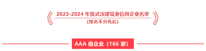 为贯彻落实党和国家关于社会信用体系建设的一系列要求和部署,推进社会信用体系建设高质量发展,建立健全武汉市建筑市场诚信体系,规范建筑市场秩序,营造诚实守信、公平竞争的营商环境,根据武建协〔2025〕32号文《关于开展2023-2024年度武汉建筑业信用企业评价工作的通知》要求,武汉建筑业协会对在本市行政区域内从事建筑活动的会员企业组织开展了2023-2024年度武汉建筑业信用企业评价工作。