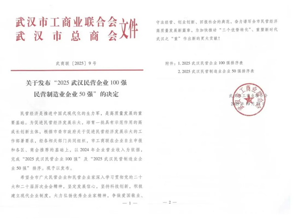 “武汉民营企业100强”榜单出炉,该榜单由武汉市委统战部、市委宣传部、市经信局、市工商联共同组织,在企业自主申报的基础上,以2024年企业营业收入总额为依据,由市工商联完成。十一年坚守,见证澎湃动能。武汉民企百强榜单如同一面镜子,映照出本土经济从“量变”迈向”质变”的壮阔征程,在产业转型、科技自强与全球布局中展现出强大的韧性与活力。